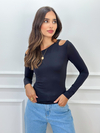 Blusa básica manga longa de um ombro só, detalhe diferenciado para o recorte no ombro. Tecido suplex de poliamida.