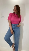 Basica em malha, com manga curta e gola baixa.