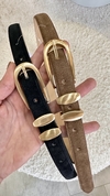 Cinto de camurça, com enchimento e forro de couro. Fivela e passante dourado escovado. Largura - 2cm.