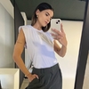 Muscle tee em malha. Não possui ombreira, é dupla nas mangas, o que faz com que dê o formato mais robusto.